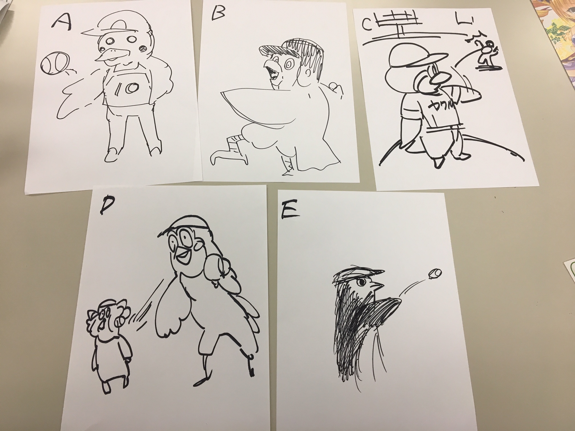 うろ覚えのお題は「キャッチボールをするつば九郎」みんななかなかクオリティが高い…というかお題がシチュエーションと見事にマッチしてました