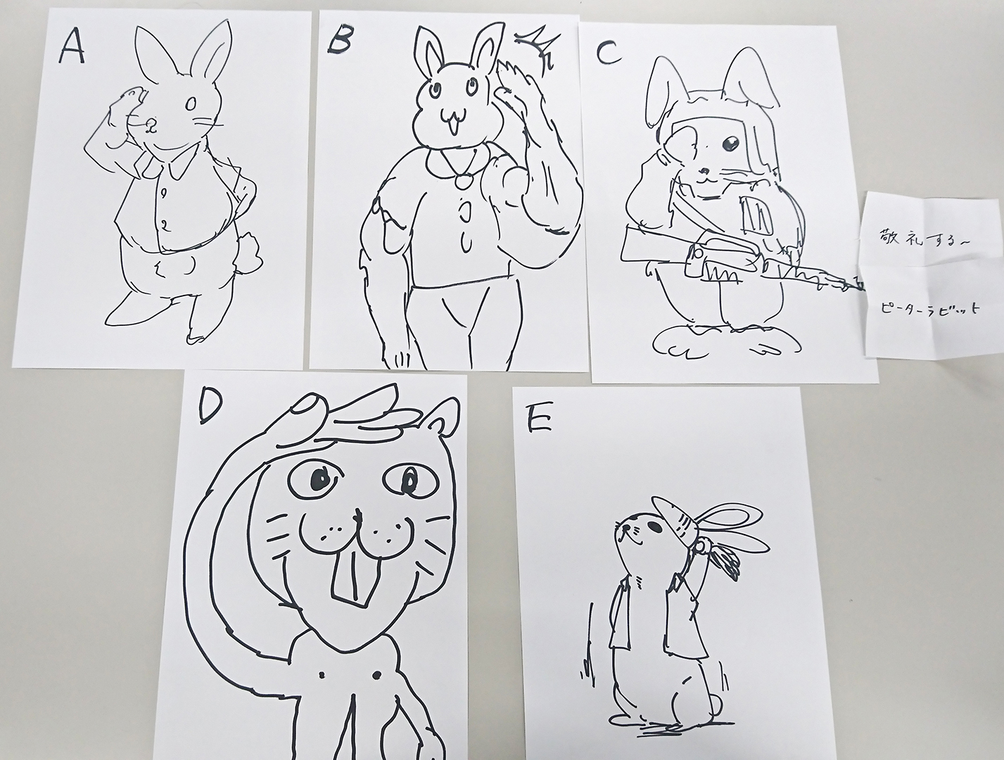 お題は『敬礼をするピーター・ラビット』!